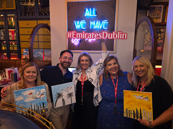 It’s been a very busy week for the Emirates team in groups as Greyce Kelly Inacio and Fiona Sheridan hosted trade partners to Paint and Prosecco where all the budding Picasso’s enjoyed a night of class Emirates hospitality before been wined in dined in Dublin’s Café En Seine.