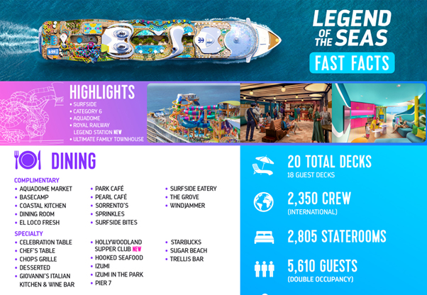 This July, Royal Caribbean’s Legend of the Seas will set a new standard for entertainment at sea by combining headline-worthy productions across stage, air, water and ice, 28 spots to dine and drink, nonstop live music and immersive experiences for the whole family.